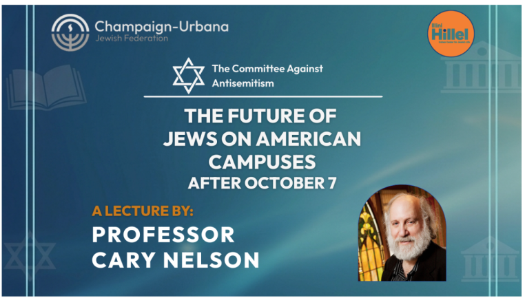 On March 26, 2026, Dr. Cary Nelson, UIUC Professor Emeritus and Jubilee Professor of Liberal Arts and Sciences, gave a talk about antisemitism at American universities. Professor Nelson has written or edited thirty-nine books on topics which include modern American poetry, antisemitism, and the politics of higher education. His newest book, "College Zionists Confront the Abyss,” about reactions to October 7, will be published this summer, and formed the basis of this talk. Refreshments were provided. Prof. Nelson's talk was followed by a lively Q&A.