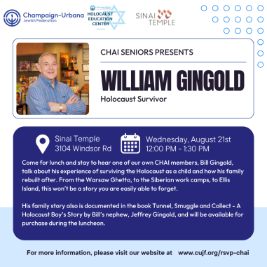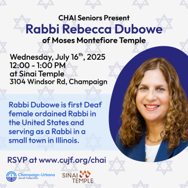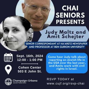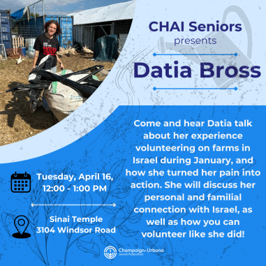 This event is part of the Chai Seniors series, but is open to everyone, young and old, in our community!