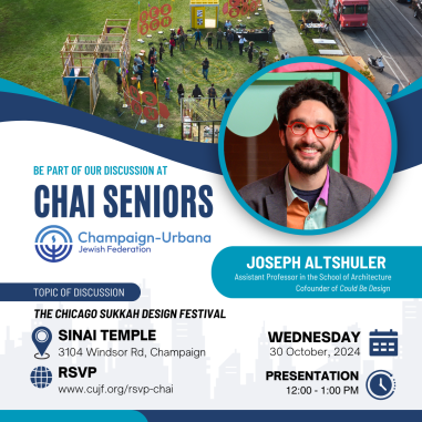 After starting the Chicago Sukkah Design Festival 3 years ago, Joseph was excited to share the progress that the festival has made in structure, design, and community engagement! He explained the concepts behind the festival and showed several of the Sukkahs desiged in this and past years. You can learn more about the Chicago Sukkah Design Festival HERE!