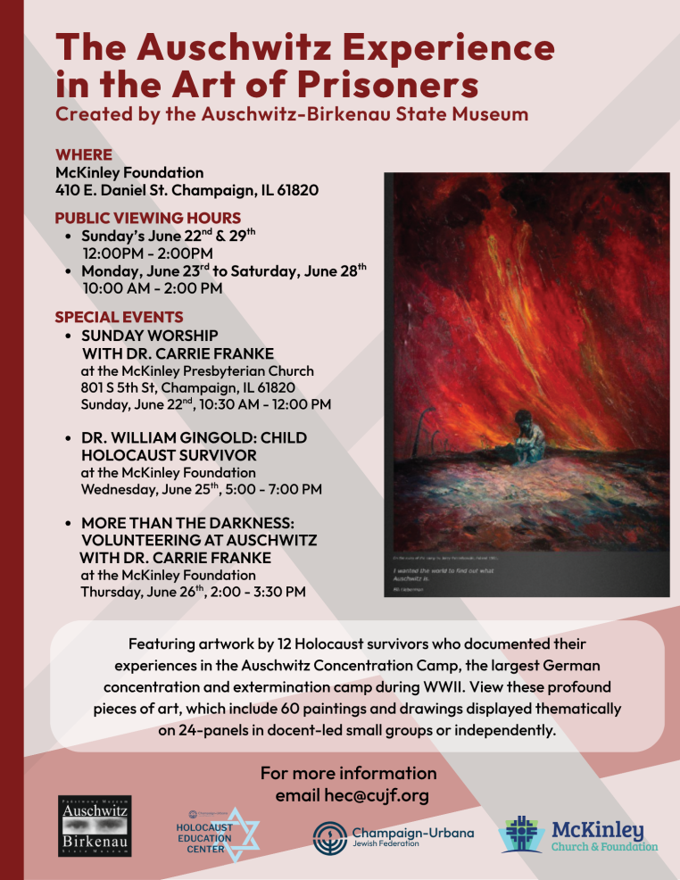 This exhibition is in partnership with the CUJF Holocaust Education Center and the McKinley Memorial Presbyterian Foundation Artists Alley.