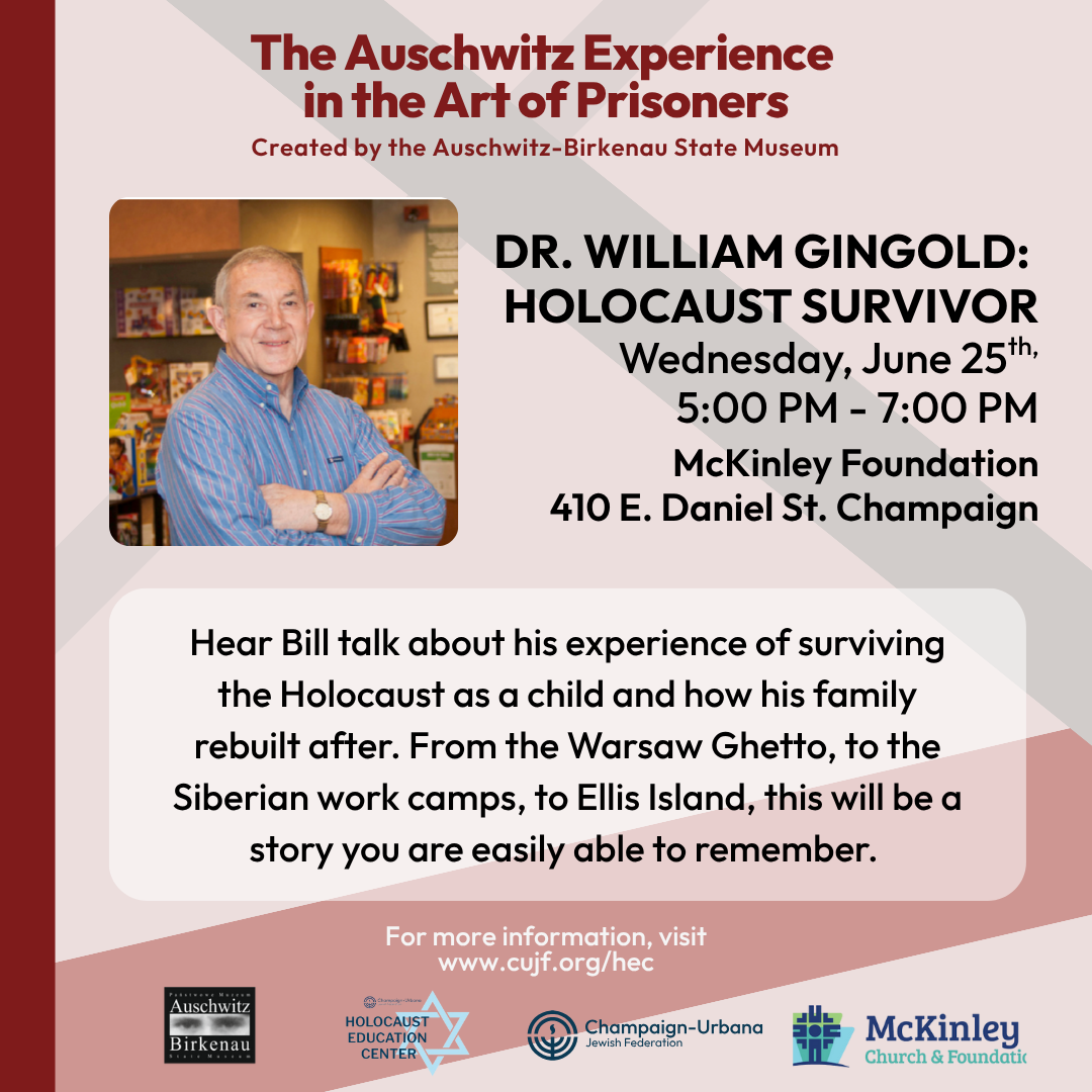 His family story also is documented in the book Tunnel, Smuggle and Collect - A Holocaust Boy’s Story by Bill’s nephew, Jeffrey Gingold, and will be available by donation during the event.