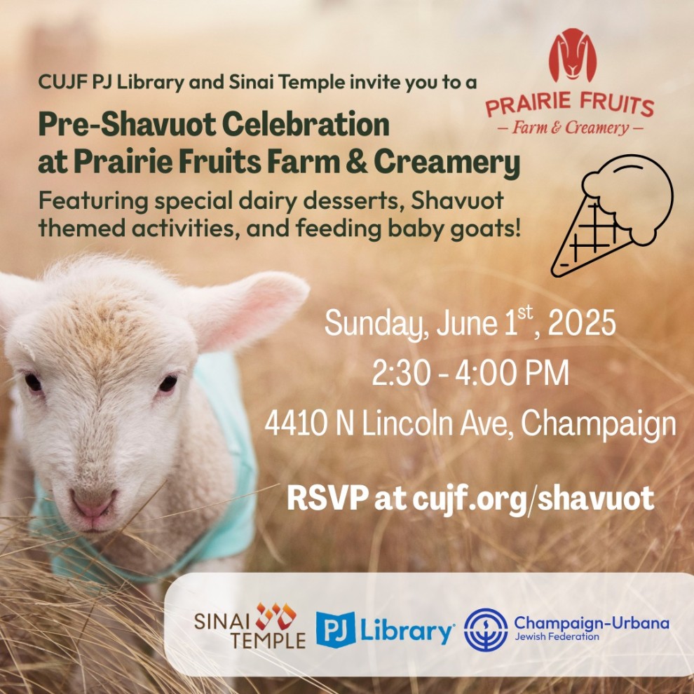 This year, CUJF PJ Library and Sinai Temple are partnering to bring you a special early Shavuot celebration that is sure to leave you filled with joy and appreciation for nature. Join all your PJ Library friends for special dairy desserts, Shavuot themed activities, and feeding baby goats! Whether you are completing your Omer count or have never celebrated Shavuot before, all are welcome for this family friendly event.