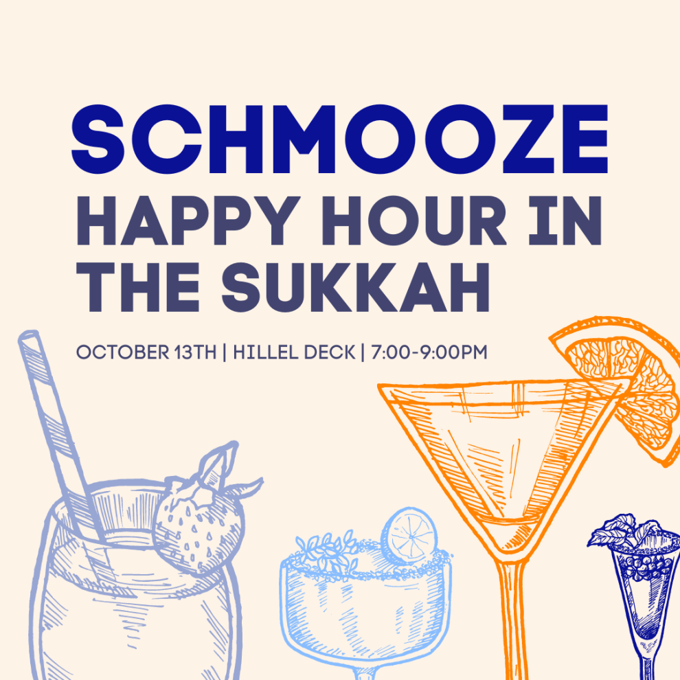 Come join Schmooze on the Hillel Rooftop Sukkah for games, drinks, socializing, and snacks! Also, come make your own mini snack Sukkah. See you tonight! |