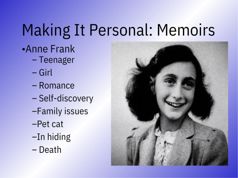 Max also made an additional film, Ann's Story, a documentary that he wrote and produced based on the experiences of his great-grandmother and her family. It contains an interview of her, allowing viewers to hear her voice.