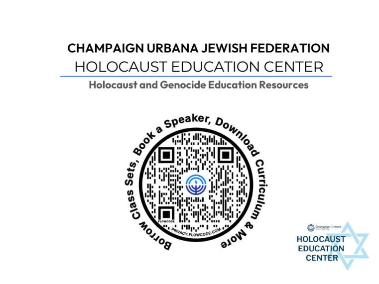 Jewish Federation’s Holocaust Education Center sponsors an annual student exhibit featuring original works on the study of the Holocaust created by local students from Champaign and Ford Counties. Featured video presents students work.