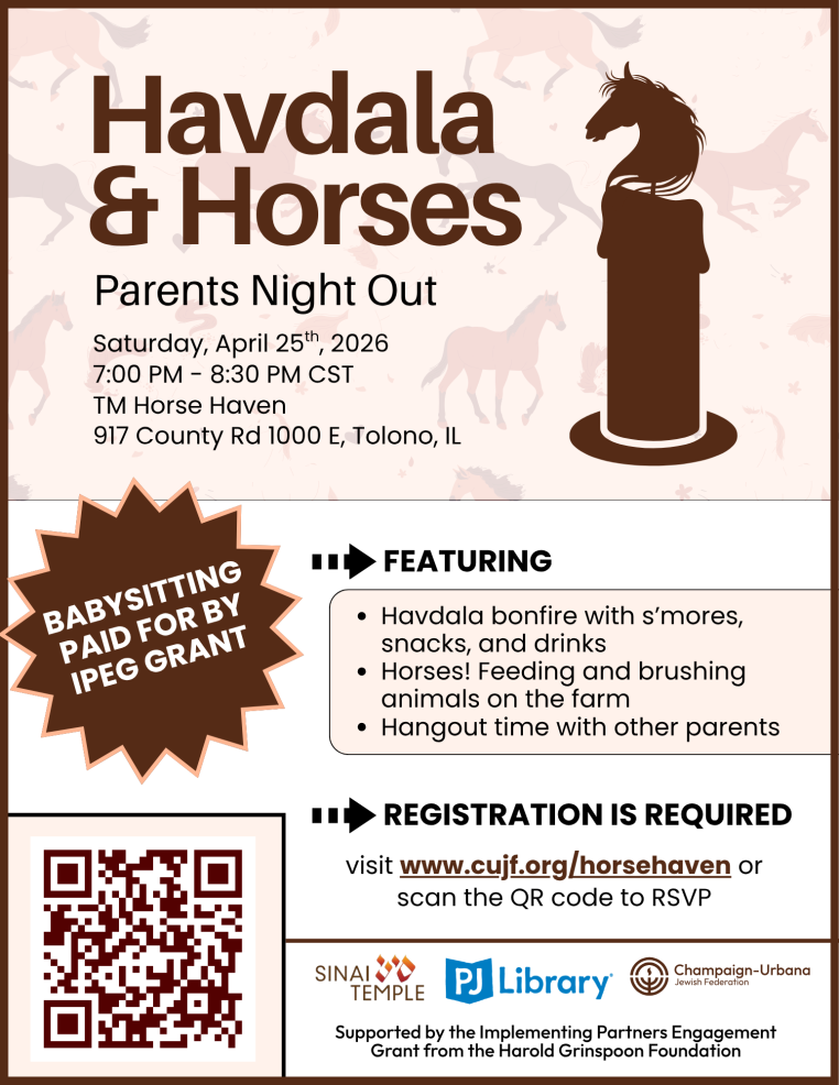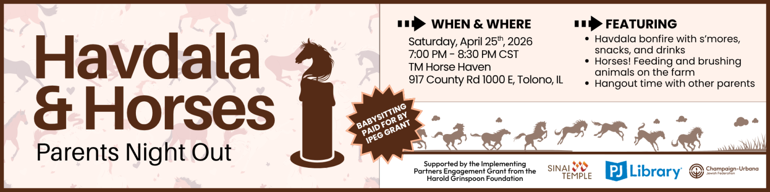 Then join CUJF PJ Library and Sinai Temple for a special Parents Only Havdala with Horses at TM Horse Haven, a local non-proft dedicated to providing a safe space for people to rest, restore, and renew.